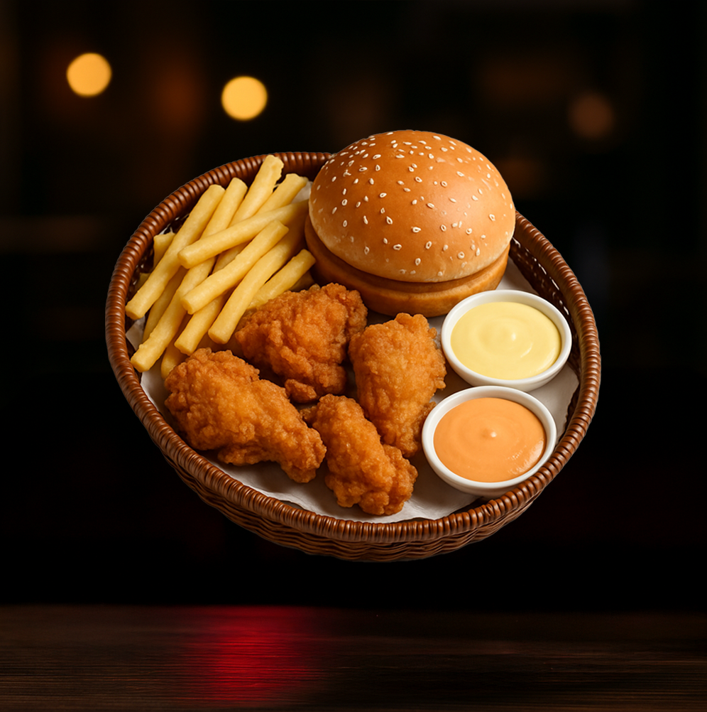 4 Pieces Chicken + 1 Bun + 2 Garlic Sauces + Fries